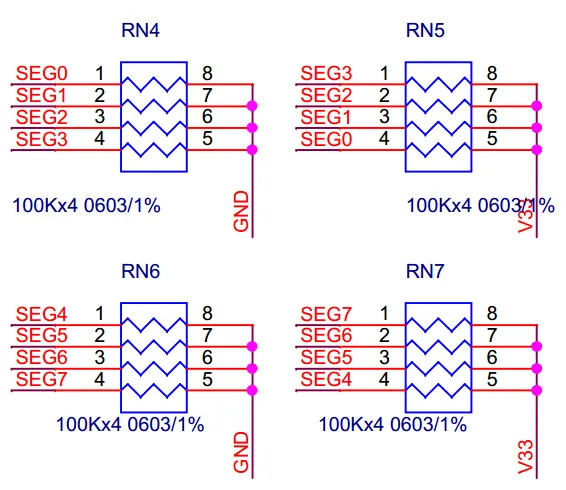 该电路使得SEG口通过不同的输出模式,能输出5种不同的电压:
