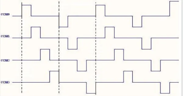 以1/2 BIAS 1/4duty的LCD为例