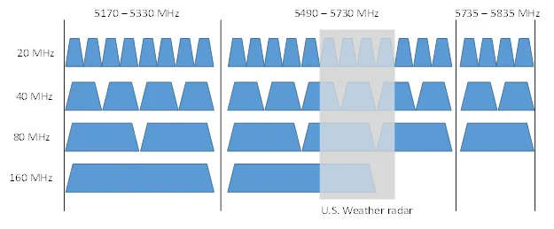 第三个需要考虑的因素是更宽信道的共享。例如,北美地区的802.11ac运营只有一条160MHz的可用信道,欧洲仅有两条可用信道。