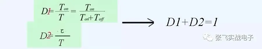 在反激式开关电源中,开关管导通的时候,变压器次级线圈是没有功率输出的,D1、D2有下面关系: