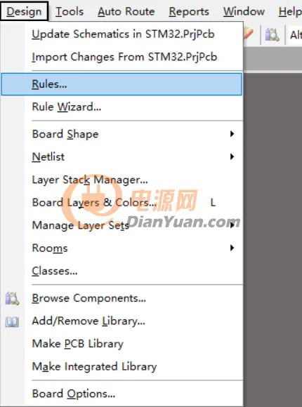 <strong>【布线规则篇】:</strong>如何打开布线规则,选择Design选项Rules选项,具体操作如下:
