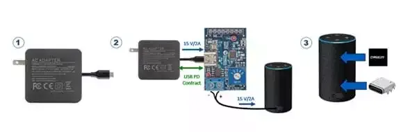 <center><img src="http://mouser.eetrend.com/files/2019-07/wen_zhang_/100044376-76002-3.pn…; alt=“图2” width="600"></center><center><i>图2:使用Cypress EZ-PD BCR评估套件将USB-C轻松集成到终端设备的步骤(资料来源:Cypress)</i></center>