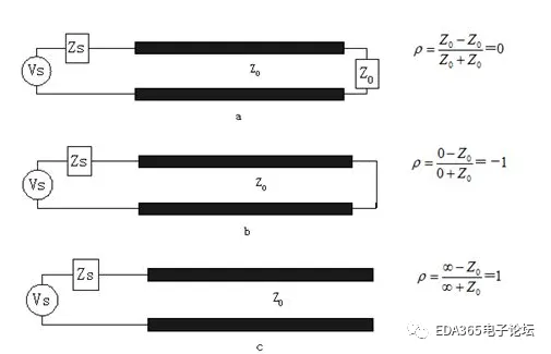 等式假设信号在特征阻抗为Z0的传输线上传送遇到了不连续的阻抗Zt。注意如果Z0=Zt,反射系数为0,意味着没有反射。Z0= Zt这种情况就称为匹配的端接。