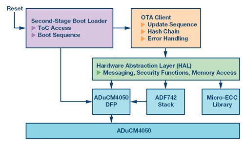<p><span>解决本文所述存储器、通信和安全设计挑战的超低功耗微控制器是</span><span lang="EN-US">ADuCM3029</span><span>和</span><span lang="EN-US">ADuCM4050</span><span lang="EN-US">.</span><span>这些微控制器包含本文讨论的用于</span><span lang="EN-US">OTA</span><span>更新的硬件外设,例如闪存、</span><span lang="EN-US">SRAM</span><span>、加密加速器和真随机数发生器。这些微控制器的器件系列包</span><span lang="EN-US">(DFP)</span><span>为在这些器件上构建</span><span lang="EN-US">OTA</span><span>更新解决方案提供了软件支持。</span><span lang="EN-US">DFP</span><span>包含外设驱动,以便为使用硬件提供简单灵活的接口。</span></p>