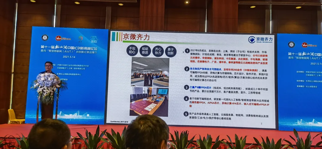 <p>今天,2021松山湖中国IC创新高峰论坛在美丽的松山湖拉开大幕,作为业内推广中国芯最知名的平台,每届松山湖论坛重点推广8~10款代表中国先进IC设计水平、与年度热门应用需求紧密结合的IC新品,松山湖论坛已经成功举办10届,本届松山湖论坛聚焦智慧物联网,推荐的10款产品均代表了目前本土AIOT领域最具创新和特色的产品。在开场第一看产品推介中,京微齐力CEO王海力推介该公司的40nm工艺FPGA。</p>