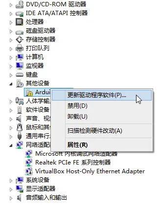 找到其它设备 -->Arduino-xx,右击选择更新驱动程序软件。