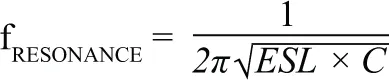 电容自谐振频率就是电容电抗(1/ωC)等于ESL电抗(ωESL)时的频率。对这一谐振频率等式求解得到下式: