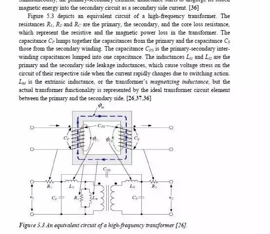 大家都知道这个尖峰是开关MOS开通的时候出现的,根据反激回路,Ids电流环为Vbus经变压器原边、然后经过MOS再到Vbus形成回路。本来原边线圈电感特性,其电流不能突变,本应呈线性上升,但由于原边线圈匝间存在的分布电容(如下图中的C),在开启瞬间,使Vbus经分存电容C到MOS有一高频通路,所以形成一时间很短尖峰。