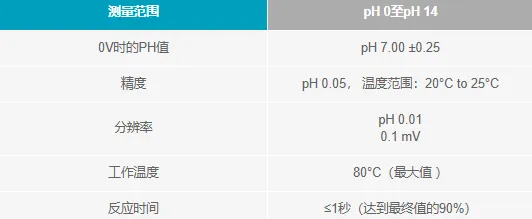 即使非常小的电路电流流经电路中各器件的高电阻(尤其是测 量电极的玻璃膜),这些电阻上也会产生相对较大的压降,严 重降低仪表测得的电压。更糟糕的是,测量电极产生的电压差 非常小,处于毫伏范围(理想情况下,室温时每pH单位对应59.16 mV)。用于此任务的仪表必须非常灵敏,并且有超高输入电阻。