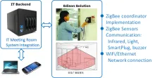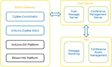 我们开发了智能会议室系统(SCR 系统)来帮助解决这些问题。 SCR 系统包含英特尔® Edison 开发板、Arduino 扩展板、Android 智能手机、推送服 务器和 ZigBee 传感器(包括 ZigBee 光传感器、ZigBee 红外线传感器、ZigBee 智能插座和 ZigBee 报警器)。 借助该系统,我们可以检测到会议室内 的实时环境状况,我们的系统可以判断该会议室内是否有人并通知推送服务器安排会议室,帮助高效、便捷地使用会议室空间。