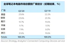 Strategy Analytics:返校季需求旺盛的Q3,惠普以微弱优势赢取全球笔记本电脑市场份额第一 winniewei / 周一, 23 十一月 2020 - 11:58 Strategy Analytics最新发布的研究报告指出,2020年Q3,惠普以微弱优势在近年来首次击败联想,重新夺回了笔记本电脑市场的领导地位。 总体而言,随着全球转向远程工作、教育和数字化的新选择,该行业在上个季度加快了步伐,总出货量同比增长了34%。 面对创纪录的需求,如此高的增长率实际上受到供应紧张的限制,随着冬季和更多疫情隔离举措的临近,该行业的竞争格局增加了更多戏剧性。 阅读更多 关于 Strategy Analytics:返校季需求旺盛的Q3,惠普以微弱优势赢取全球笔记本电脑市场份额第一登录 发表评论